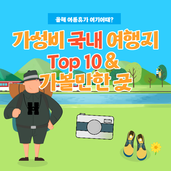 가성비 좋은 국내 여름휴가 추천지 10곳 및 가볼 만한 곳을 알아보았습니다. 이 외에도 국내에는 아름다운 여행지가 많습니다. 취향에 맞는 여행지를 선택하여 즐거운 여름휴가를 보내시기 바랍니다. 특히나 이번 여름은 더위가 극심하며 비가 많이 온다고 합니다. 안전하게 보내는 게 제일 중요한 거 모두 아시죠?