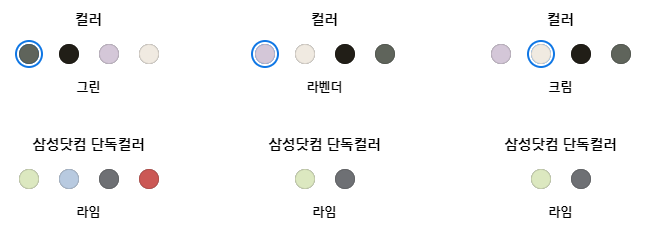 기본적으로 그린, 라벤더, 크림, 팬텀블랙 4가지 색상을 제공하고 있으며, 삼성닷컴에서 구매 시 라임, 그라파이트, 레드의 색상을 추가로 선택 가능합니다.