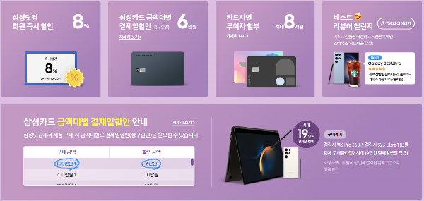 삼성닷컴에서 구매하면 중고폰 최대 15만 원 할인과 카드할인, 회원 할인등 다양한 혜택이 추가로 있습니다.