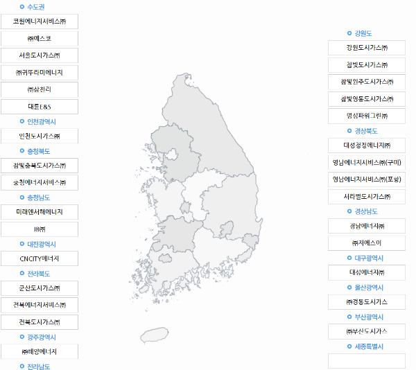 전국 34개의 도시가스 공급업체가 있으니, 지역별로 확인하고 필요사항을 신청해야 합니다.