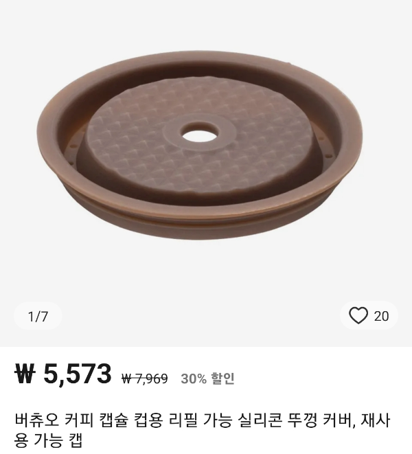 재사용 가능한 뚜껑으로, 원하는 원두를 넣고 기존에 사용한 제품의 포드를 이용합니다. 보통은 실을 별도로 팔기도 하는데 귀차니즘을 싫어해 실리콘 뚜껑이 좋다고 생각했습니다. 뚜껑은 식품 등급의 안전한 재료로 만들어져 있고, 기존 버츄오제품 모두와 호환 가능합니다. 장점은 원하는 원두를 선택할 수 있다는 점과, 쓰레기를 줄일 수 있다는 점입니다. 단점은 원두를 분쇄하고 채우는 과정이 번거롭다는 점과, 뚜껑이 잘 닫히지 않으면 물이 샐 수 있다는 점입니다.