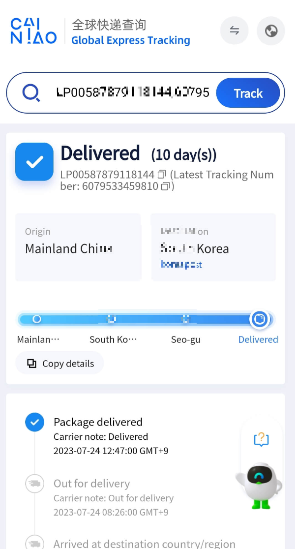 4. 배송업체의 홈페이지나 앱에 접속합니다. (예: 17 TRACK, Cainiao, etc.)