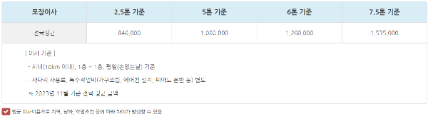 이사는 크게 차량 운송비와 인건비, 사다리차 사용료, 추가작업비와 이사날짜 등의 기타비용으로 나뉘어 있습니다. 이 외에는 별도의 비용이 발생하지 않으니 추가 비용을 요구하는지 확인이 필요합니다.
