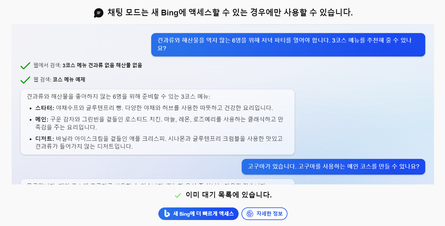 현재 '빙'은 사용자가 많아 대기가 있을 수 있습니다.