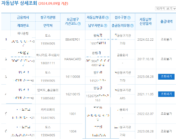 - 자동납부 상세 조회