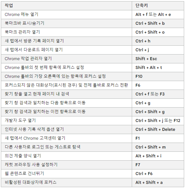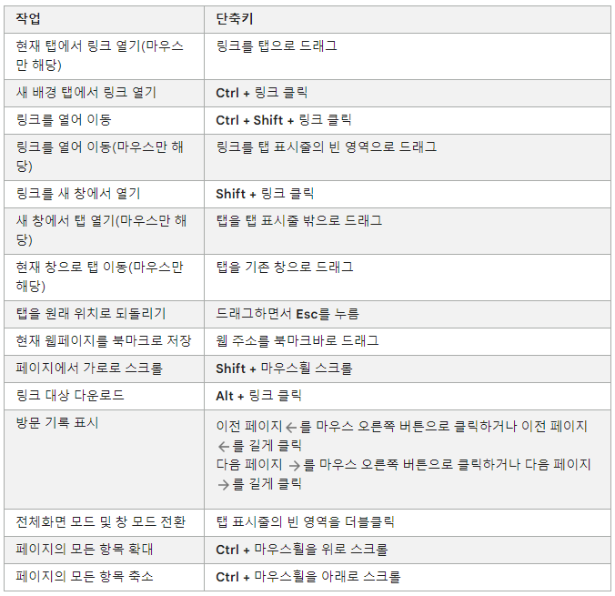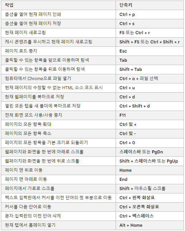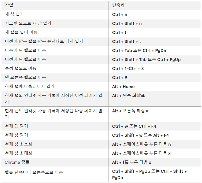 그중에서도 제가 크롬에서 유용하게 자주쓰는 단축키입니다.